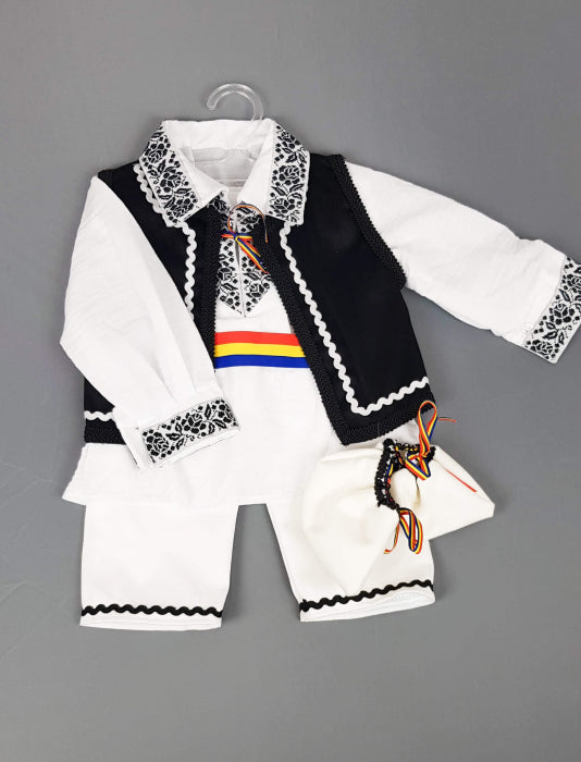 masura 6 - 9 luni (ie bust - 56cm; lungime 39cm; lungime maneca - 38cm; vesta - 57 cm bust; vesta lungime - 33cm; lungime pantalon - 45cm)