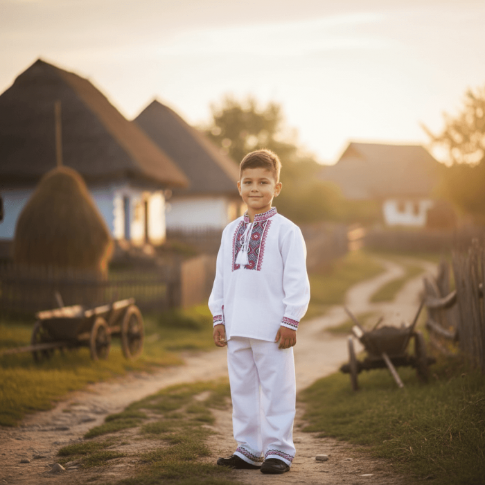 Compleu Baieti Traian cu broderie rosie