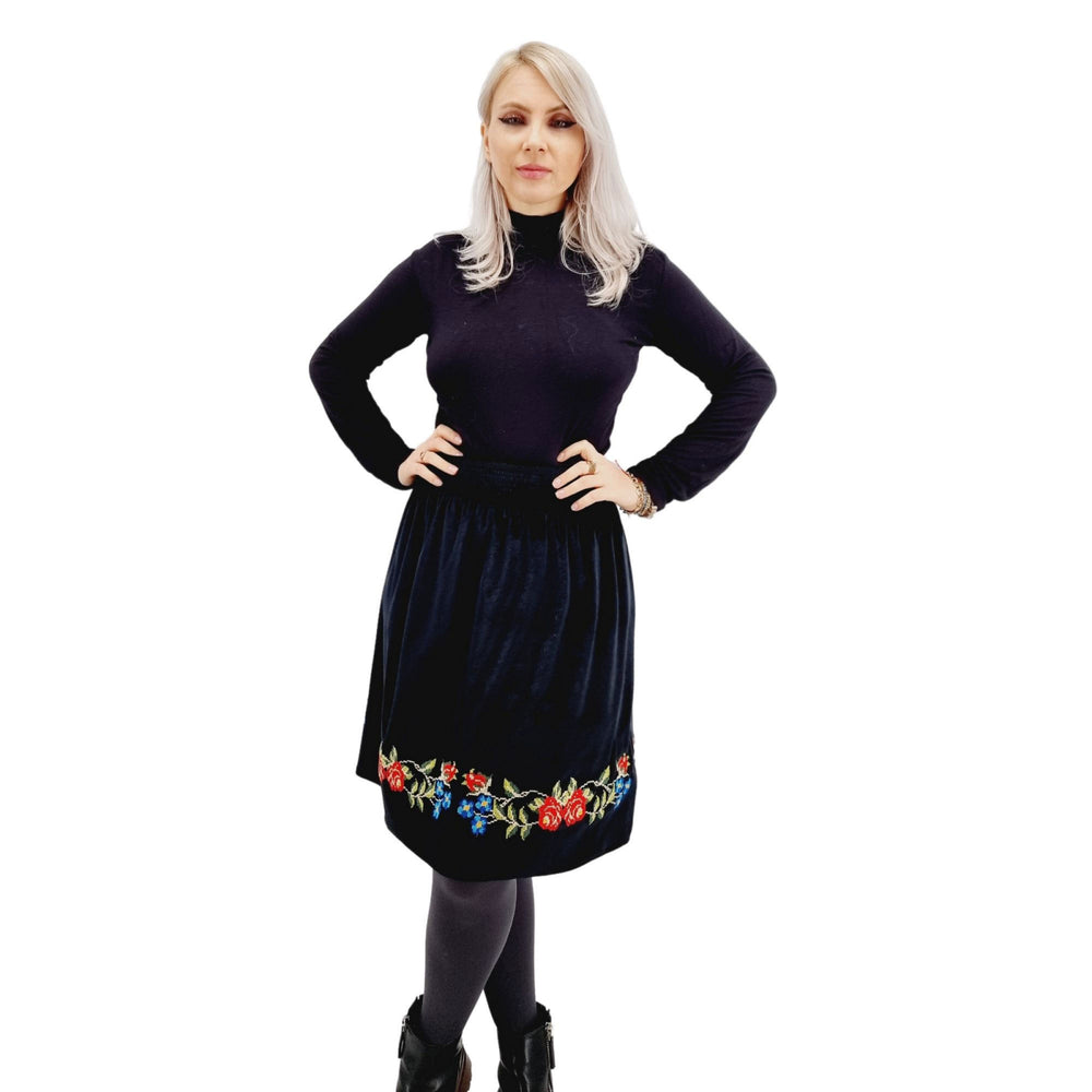 Fustă din catifea cu motive tradiționale 18 – Eleganță autentică cu farmec românesc
