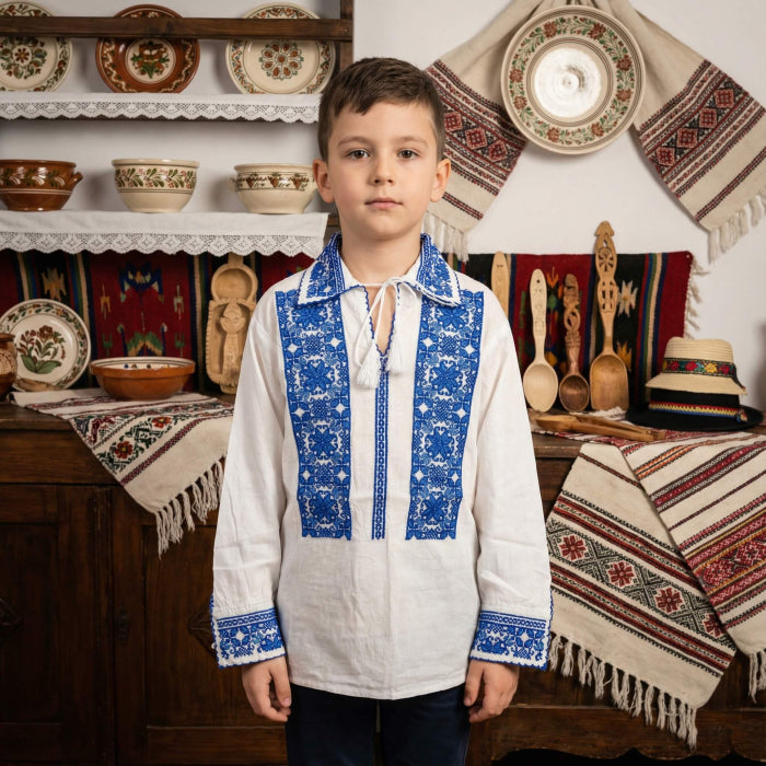 2 – pentru copii intre 0-2 ani (circumferinta bust bluza – 75cm, lungime bluza – 40 cm, lungime maneca – 32 cm)
