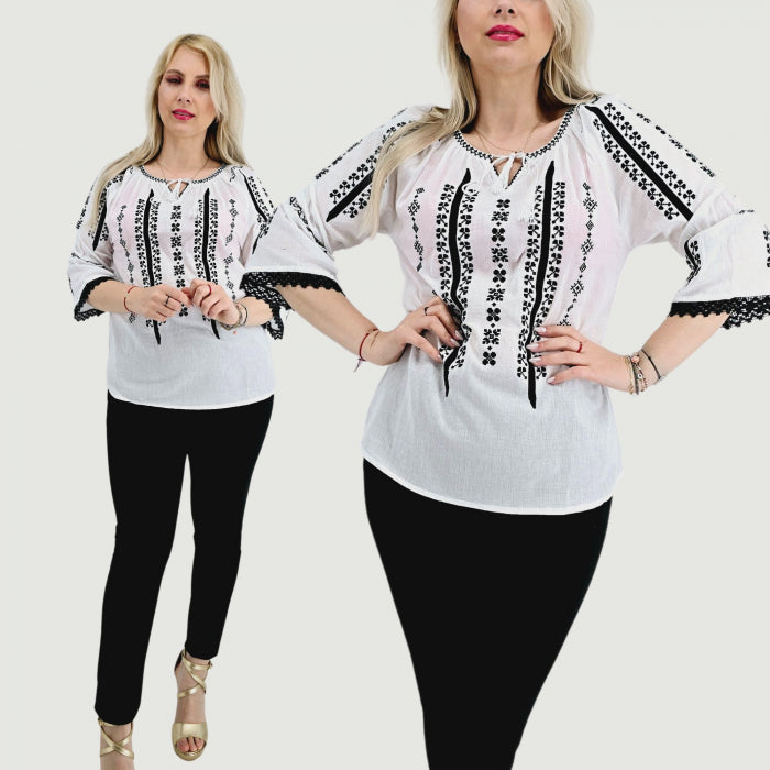 Ie din panza de bumbac 100%, Broderie cusuta la masina