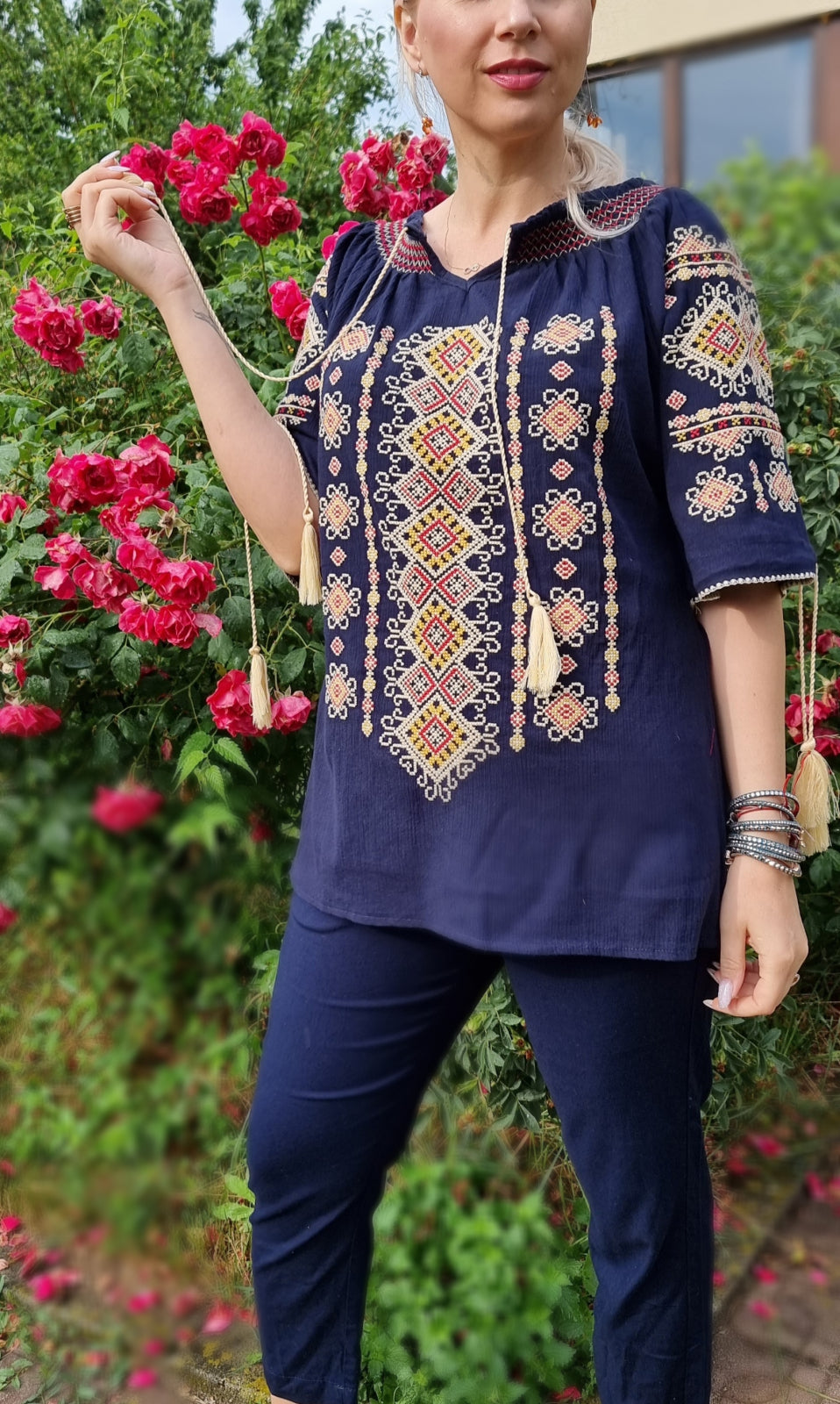 Această ie tradițională se remarcă prin calitatea materialelor și atenția la detalii, oferind un echilibru perfect între eleganță și confort. Fiecare model este creat pentru a îmbina frumusețea tradițională cu nevoile contemporane, făcând-o o alegere ideală pentru pasionații de modă etnică și nu numai.