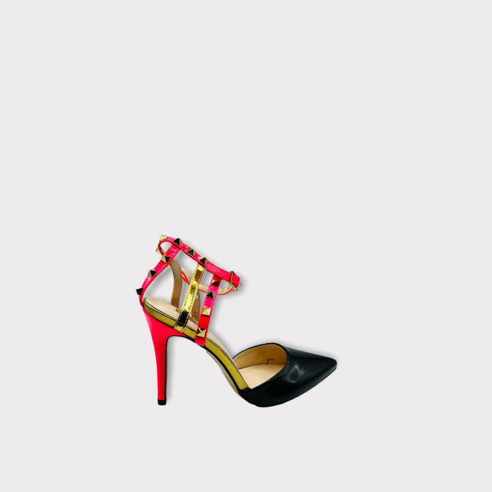 Pantofi stiletto in nuante de negru si roz, perfecti pentru o tinuta super elegantă. Toc înalt și subțire, ideal pentru o noapte plina de distractie.