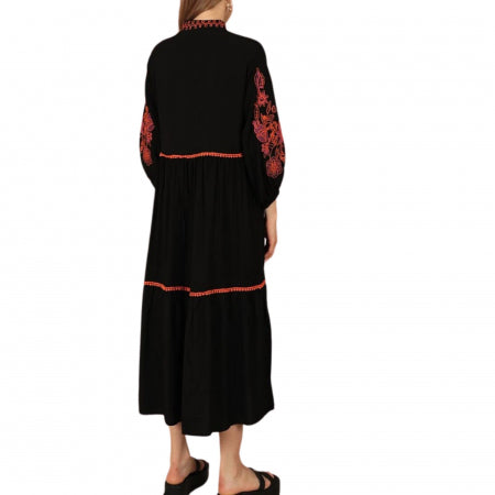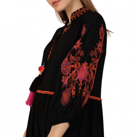✨ Rochie damă din vâscoză, cu broderie decorativă și croi lejer, ideală pentru orice ocazie. Prevăzută cu buzunare și mâneci 3/4, oferă confort și libertate de mișcare.