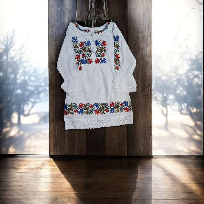 14 – pentru copii intre 12 – 14 ani (circumferinta bust – 82cm, lungime rochie– 78 cm, lungime maneca – 42 cm)