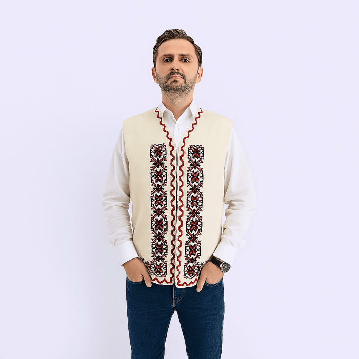 Vesta este lucrata din lana si acril, fiind foarte rezistenta. Broderia este lucrata mecanic grena, iar modelul este traditional. Vesta este perfecta pentru orice barbat care doreste sa atraga complimente.
